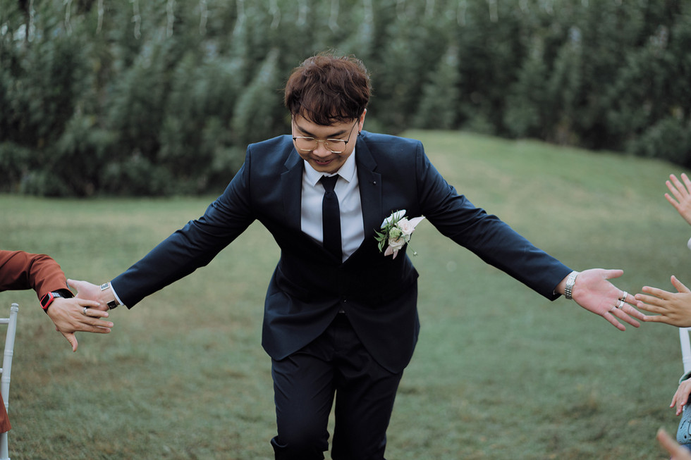 哇!恭喜婚禮人大頭哥結婚,其實要拍婚禮人的婚禮是很有壓力的,就像是在老師面前要傳授他知識一樣地,所以有趣的畫面來了,大頭哥在儀式進行的時候,職業病發作還在幫太太鋪裙擺,真的很敬業